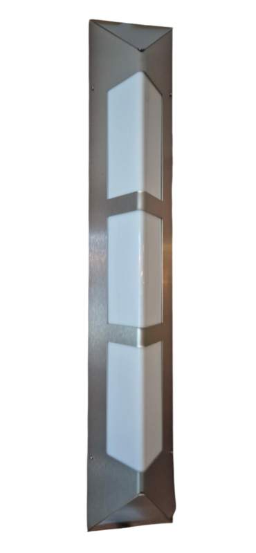 OverzichtModerne muurlamp van RVS met helder glas van Heibi.